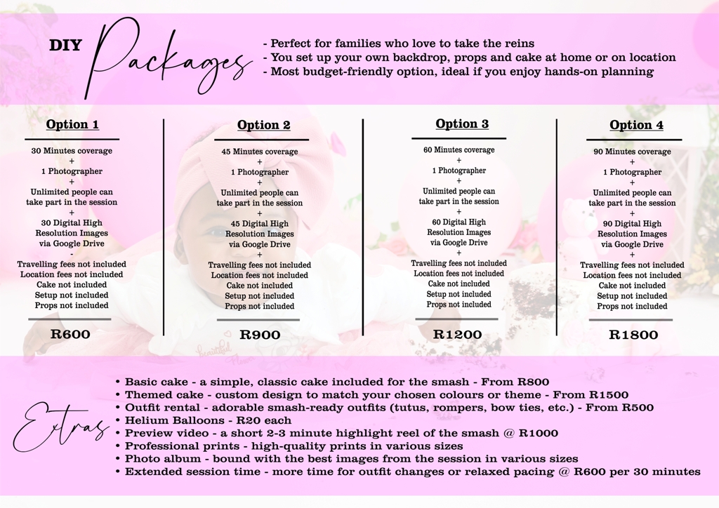 Choose your package + Extras below.